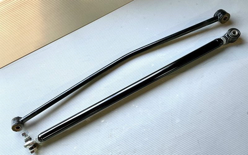 1959-1964 IMPALA 調整式ラテラルロッド This entry was posted on 2025年4月25日 大径ホイル履くにはデフが酔ってるのでラテラルロッドで調整してあげないといけません。 市販のラテラルは片方のみの調整ばかりなのでいちいち取り外さないと調整出来ません。 そこで両サイド調整式で片方は逆ネジになっているので取り外さなくてもセンターを回すだけで細かく調整出来ます。 上が純正で、下が調整式です。片方はピロになっているのでデフの前後のずれにも対応します。 なんでも楽な方が良いのです。