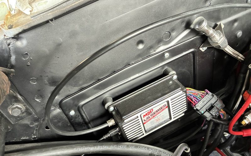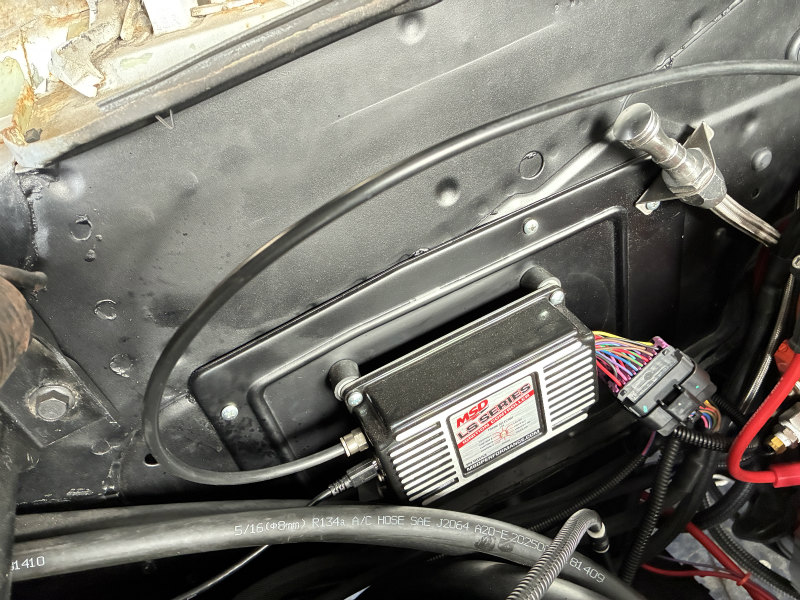 1960 ELCAMINO MSD 更新しました! This entry was posted on 2026年2月16日 新しいMSD6014はMAPセンサーが内蔵されており、取説には書いてませんがこれを繋がないと調子が出ません。 ターボがなければ繋がなくても良いとありますが嘘です。 水温センサーもオプションと書いてありますが嘘です。 水温センサーはカプラーオンなのでいいですが、MAPのバキュームはインマニから太いパイプでがっつりとらないとダメです。キャブからでは全然足りません。 これで始動時のバキュームを測定し適切な点火時期になります。